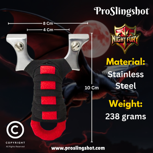 Born in shadows and wrapped in fire, the Night Fury Red & Black Wrap Stainless Steel Slingshot is a bold fusion of darkness and intensity. Its polished steel frame is layered with a striking red and black wrap, offering a fierce aesthetic and a secure grip.