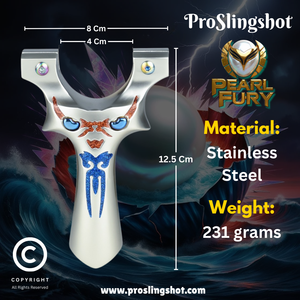 Refined but untamed, the Pearl Fury Stainless Steel Slingshot radiates elegance with an edge. Its smooth, pearl-finished frame conceals a core of fierce strength—balanced, bold, and unyielding.